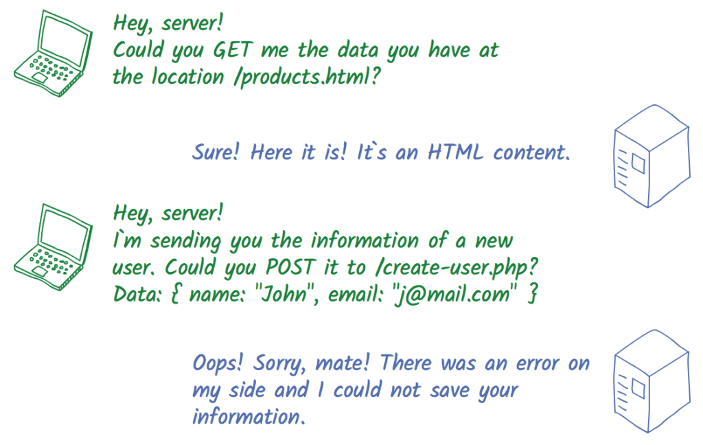 Basically the way that communication works is by exchanging messages. The client sends a request and the server sends back a response.