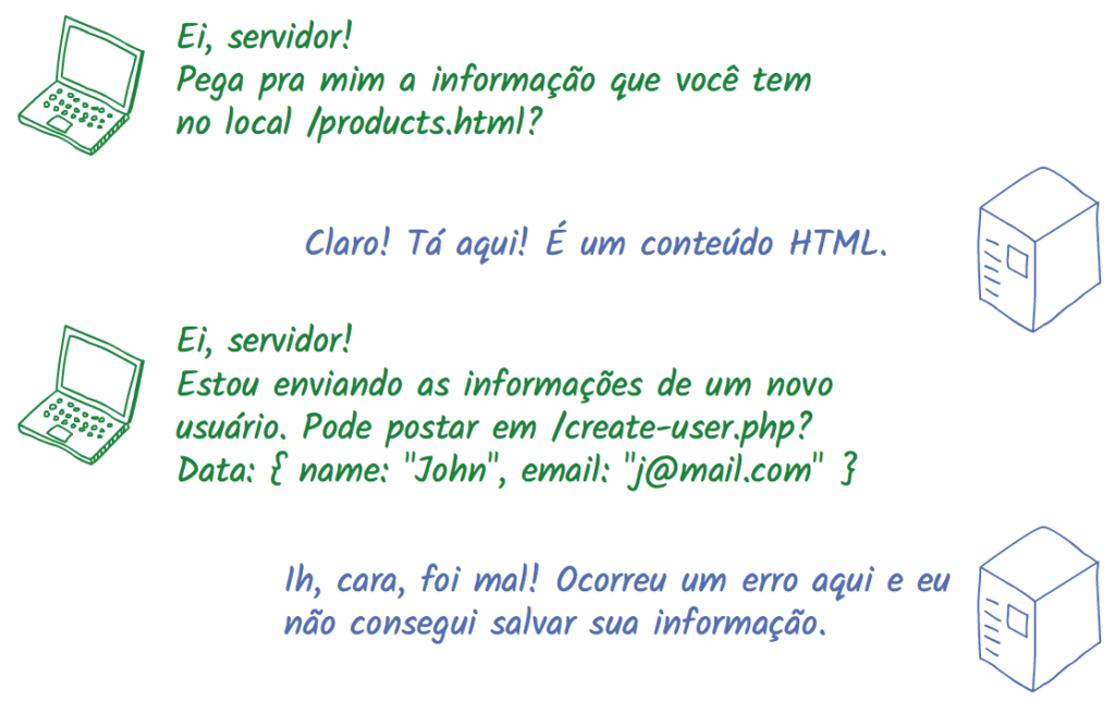 Basicamente, a forma como esta comunicação funciona é através da troca de mensagens. O cliente envia uma requisição e o servidor envia de volta uma resposta.
