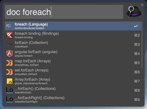 With the Alfred app for Mac, you can search DevDocs via a global shortcut, without even having to open the browser.